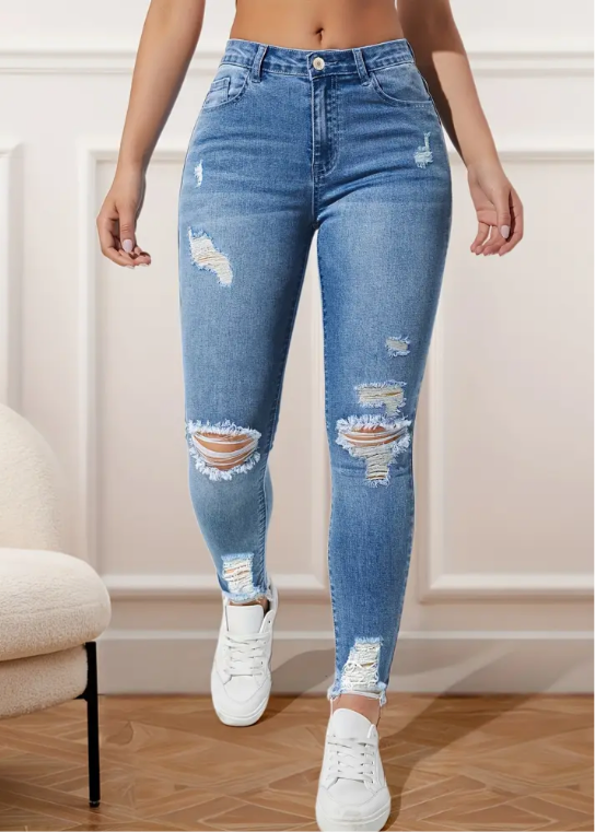 Jean corte alto con rasgado